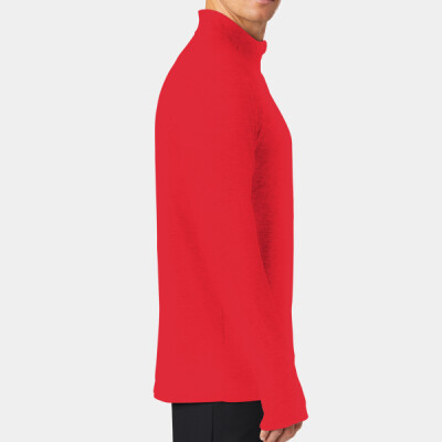 This best-seller delivers all-utility warmth and comfort from the sweat-wicking fabric down to the thumbholes. The stand-up collar and drop tail hem provide additional coverage. A contrast heat transfer Swoosh logo is on the left chest. Solids are made of 5.5-ounce, 88/12 recycled polyester/spandex jersey Dri-FIT fabric. Heathers are made of 5.75-ounce, 88/12 recycled polyester/spandex jersey Dri-FIT fabric. **